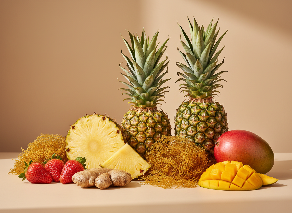 Organic strawberry, mango, pineapple, and ginger-infused sea moss powder. Sweet, spicy, and premium wellness that actually excites your taste buds. Island luxury with a fiery twist.